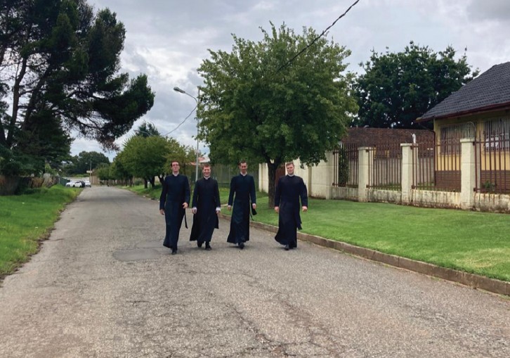 Promenade de prêtres aux abords du prieuré de Roodepoort (Afrique du Sud).